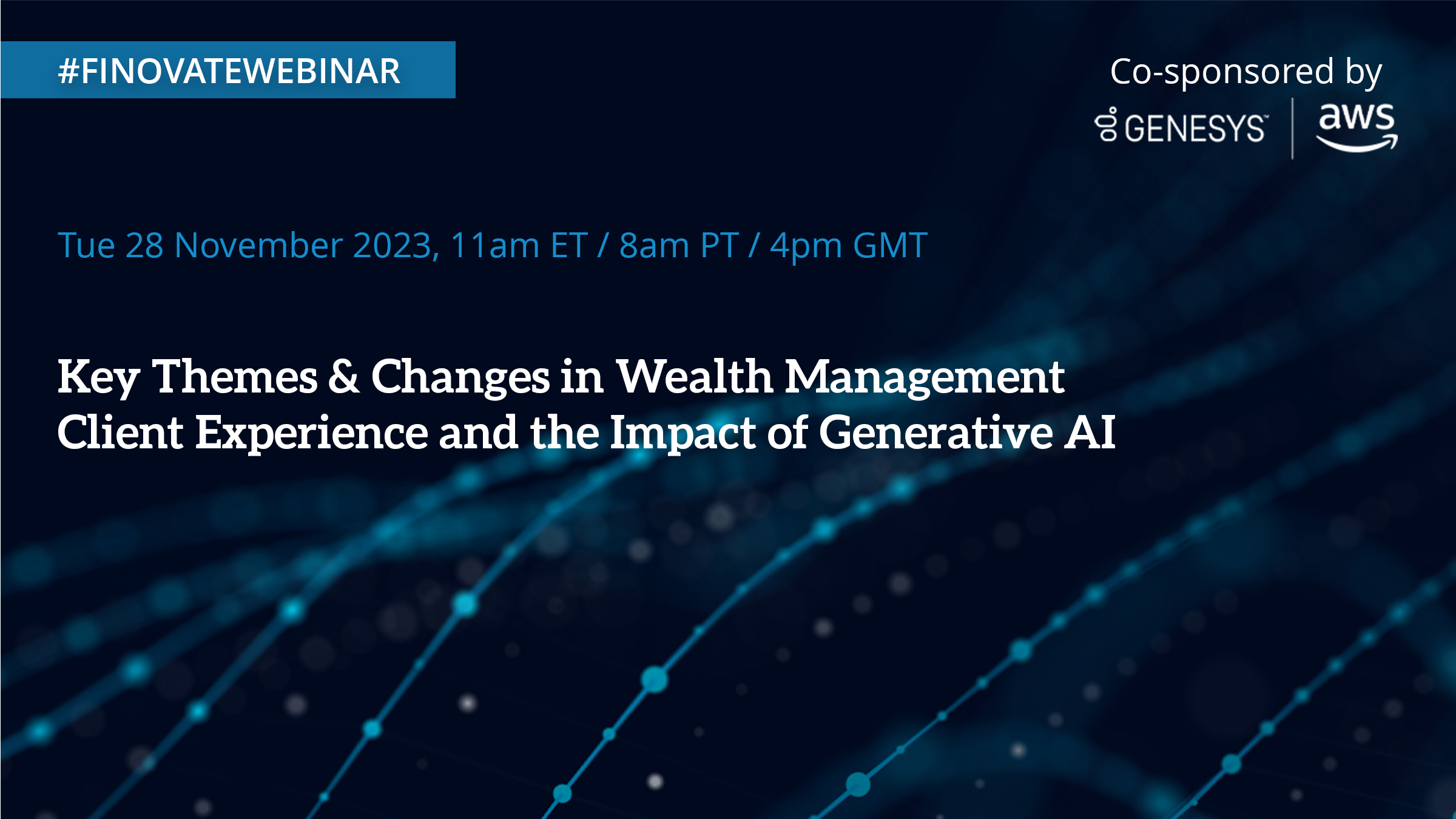 Hear from wealth management experts from Genesys and AWS about how to navigate the changing client experience landscape. Learn how to leverage cloud technology to optimize your service model, balance shifting priorities, and enable goals-based wealth management. We'll also explore how new technologies like generative artificial intelligence (AI) can enhance the client experience.